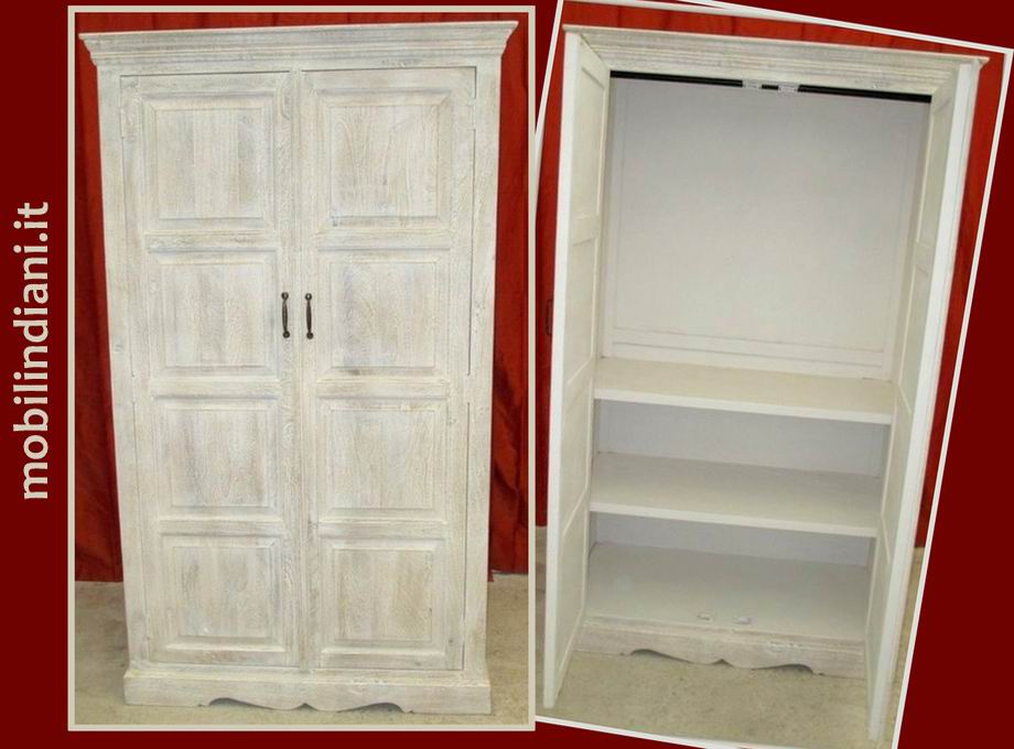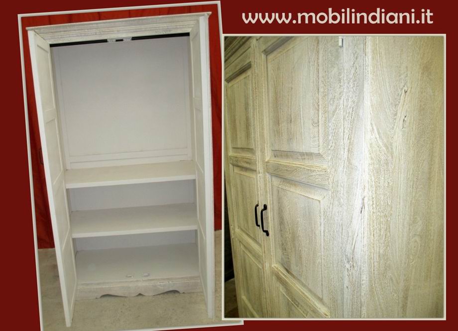 Disponibilità 1Armadio etnico con bastone appendiabiti. Legno palissandro massello decapato, finitura avorio, ante intagliate. Cm.110x55 h.190 Paese India. PER COSTI SPEDIZIONE CHIEDI su WhatsApp o via mail: info@mobilindiani.it
