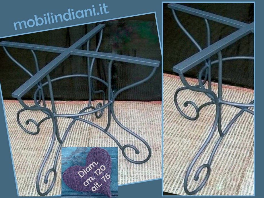 Base per tavolo rotondo o quadrato in ferro battuto. Diam cm.120 h.76 Prodotto Italiano. Vengono usati smalti antiruggine per interni ed esterni della linea Ferropiù, colore nero grafite. Basamento adatto per pianali con misure: Rotondi diam.cm.130/150 Quadrati cm.130x130/150x150 PER INFO COSTI SPEDIZIONE CHIEDI su WhatsApp o via mail: info@mobilindiani.it