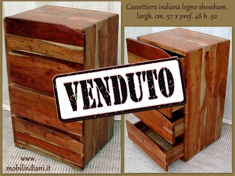 Disponibilità 0Cassettiera etnica 4 cassetti. Legno sheesham (noce) Cm.57 prof.48 h.92 Paese India. Articolo visionabile presso ns. esposizione.