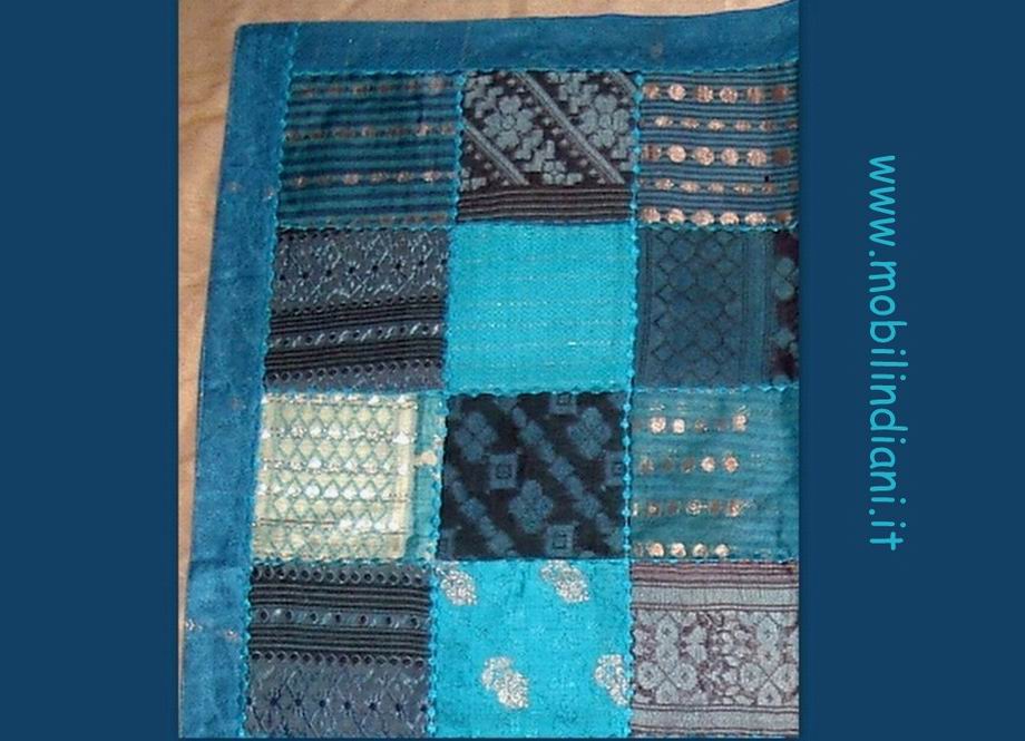 Copritavolo indiano patchwork. Realizzato a mano con tessuti indiani dal particolare effetto cangiante. Foderato sul retro. Origine Rajasthan, India. Cm.92x92 COSTO TRASPORTO €. 8,80 Iva Inclusa