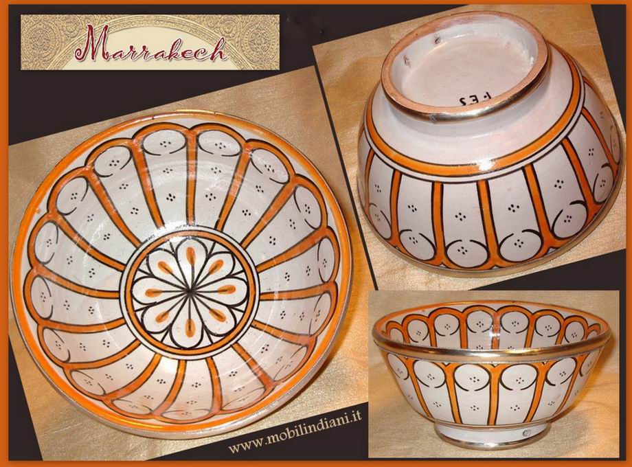 Ciotola in terracotta smaltata cotta a legna e non a gas, antica tecnica tipica del Marocco. Diam. cm.20 h.10 - applicazioni in argentone. La città di "Fes" è la più famosa per la produzione di ceramiche artigianali. COSTO TRASPORTO €. 17,93 Iva Inclusa. Per costi trasporto Isole, chiedi info su WhatsApp o mail: info@mobilindiani.it