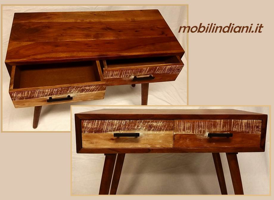 Disponibilità 1Consolle etnica moderna con cassetti. Legno massello acacia, con contrasti bianco anticato. Design essenziale e al tempo stesso elegante. Misura cm.90x40,5 h.79 Paese India PER INFO COSTI SPEDIZIONE CHIEDI su WhatsApp o via mail: info@mobilindiani.it