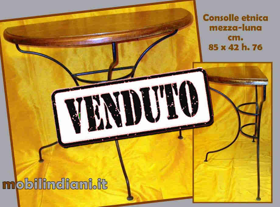 Disponibilità 0Consolle indiana mezza luna. Piano in legno di sheesham, base in ferro battuto colore nero. Cm.85x42 h.76 Paese India