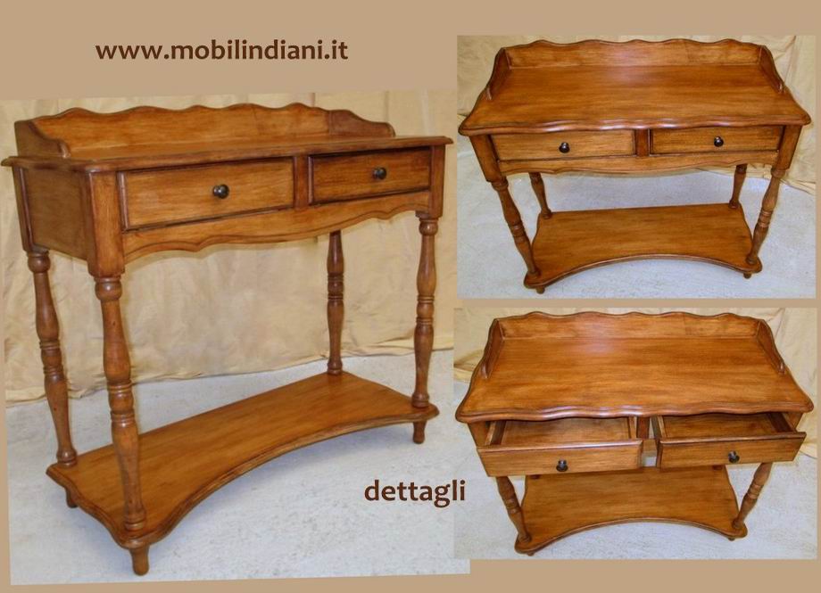 Mobili etnici ingresso. Consolle indonesiana con colonne legno di betulla, colore teak. Cm.86x36 h.84 all'alzatina. Paese Indonesia SOLO RITIRO PRESSO NS. SEDE COSTO ZERO - Per info chiedi su WhatsApp o mail: info@mobilindiani.it