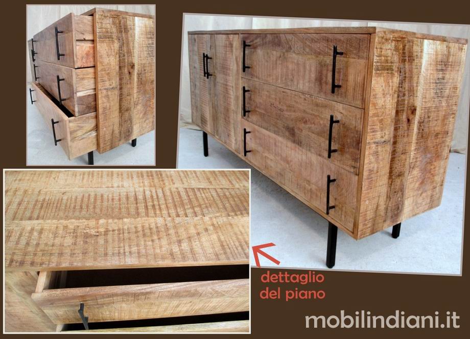 Credenza etnica in mango, finitura a cera 3/cassetti + 2 ante c/maniglie in ferro. Cm 175x43,5 h.87 India PER INFO COSTI SPEDIZIONE CHIEDI su WhatsApp o via mail: info@mobilindiani.it