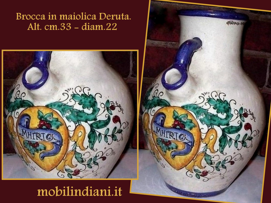 Grandi maioliche di Deruta. Boccale in maiolica dipinta a mano, decoro antico. Diam. cm.22 h.33 RITIRO PRESSO NS. SEDE COSTO ZERO - Per info chiedi su WhatsApp o mail: info@mobilindiani.it
