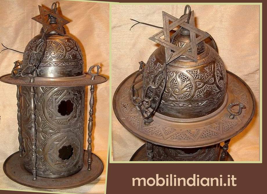 Lampadario etnico, bronzo cesellato Diam. cm. 27 h.50