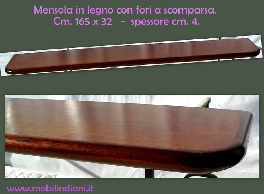Disponibilità 1OFFERTISSIMA!! Mensola in legno con staffe a scomparsa per fissaggio a parete. Cm.165x prof.32 spess.4 Paese Italia. QUESTO ARTICOLO NON VIENE SPEDITO. SOLO RITIRO PRESSO NS. SEDE, COSTO ZERO