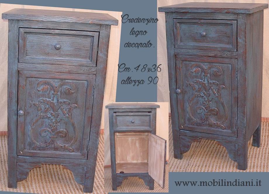 Disponibilità 1Credenzino in legno decapato con anta intagliata e cassetto. Cm.48x36 h.90 Paese Francia. Arredamento di tendenza in stile moderno e vintage, insoliti e ricercati. COSTO TRASPORTO €. 35,38 Iva Inclusa. Per costi trasporto Isole, chiedi info su WhatsApp o mail: info@mobilindiani.it