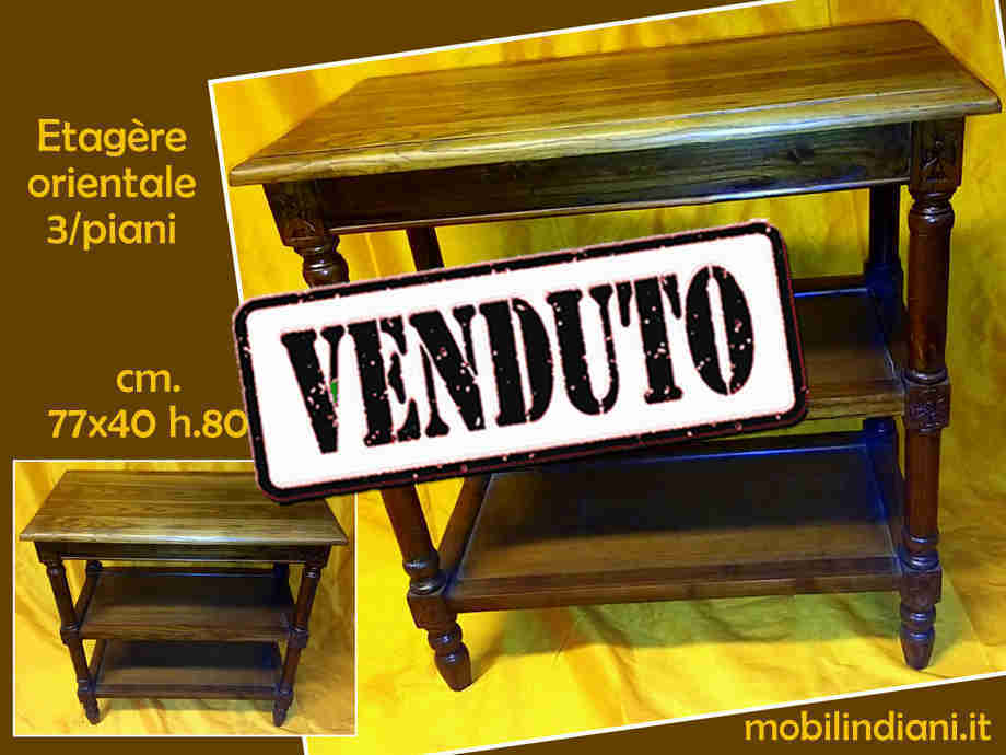 Mobile etnico in legno orientale. Mobile etagère 3 ripiani. Gambe in legno tornito. Cm.77x40 h.80 Legno olmo dell'Himalaya. Paese Cina