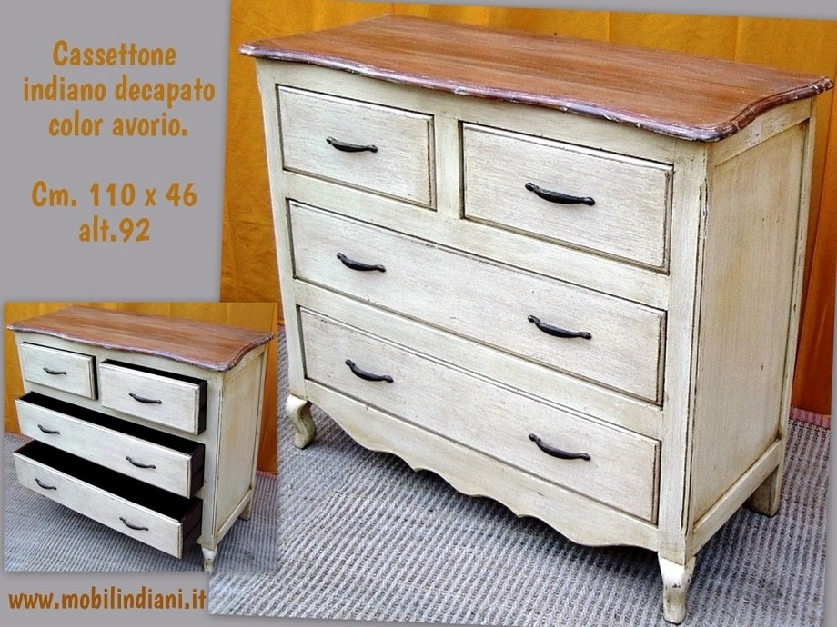 Disponibilità 1Cassettone indiano in legno palissandro decapato, color avorio con piano color noce chiaro, 4 cassetti. Cm.110x46 h.92 Paese India PER INFO COSTI SPEDIZIONE CHIEDI su WhatsApp o via mail: info@mobilindiani.it