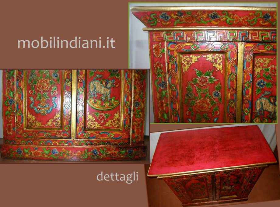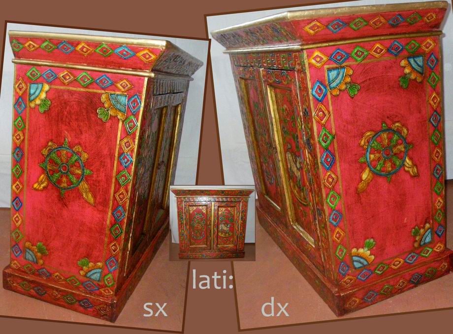 Antica credenza tibetana in legno dipinto. Cm.98x49 h.94 Tibet