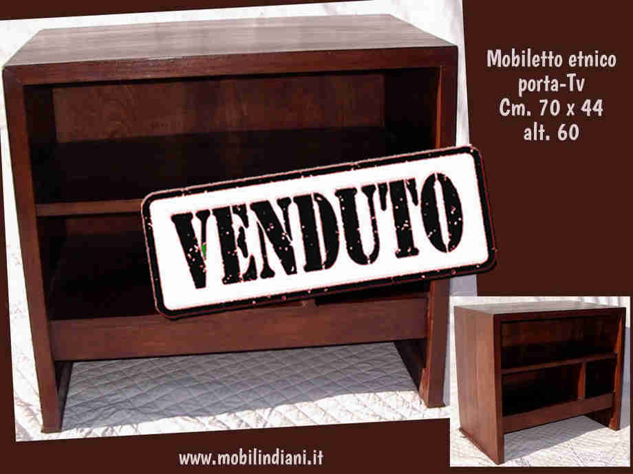 Portatv orientale con vani a giorno, legno massello sheesham. Cm.70x44 h.60 Linea essenziale. Paese India
