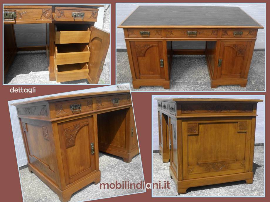 Design Vintage. Grande scrivania da centro. Cm.140x80 h.80 Realizzata negli anni '20/ca in Italia. Legno di quecia. Maniglie originali, lavorate in ottone. Dotata di 2 chiavi, serrature nuove funzionanti. Stato dell''oggetto: restaurato. PER INFO COSTI SPEDIZIONE CHIEDI su WhatsApp o via mail: info@mobilindiani.it