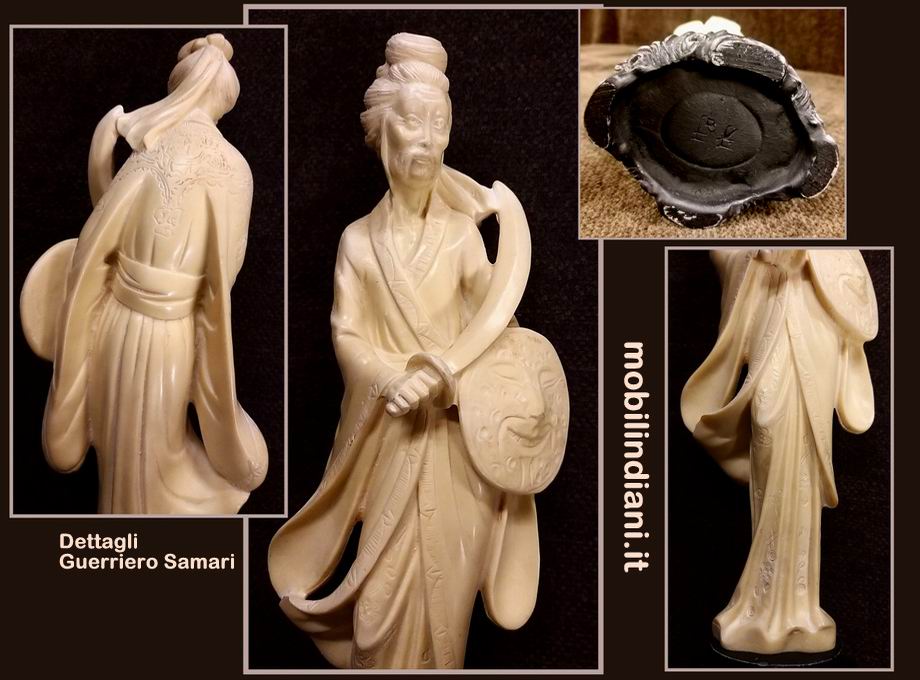 Disponibilità 1Set statue vintage da collezione, raffiguranti Guerriero Samari e Geisha Okimono. Statue prodotte dallo scultore Amilcare Santini, note per essere realizzate in resina di alabastro. La "resina di alabastro" è un composto in cui l'alabastro viene polverizzato e miscelato con resina...dove la resina agisce come collante. Misure: base cm.9,5x8 h.35 COSTO TRASPORTO €.35,38 Iva Inclusa. Per costi trasporto Isole, chiedi info su WhatsApp o mail: info@mobilindiani.it