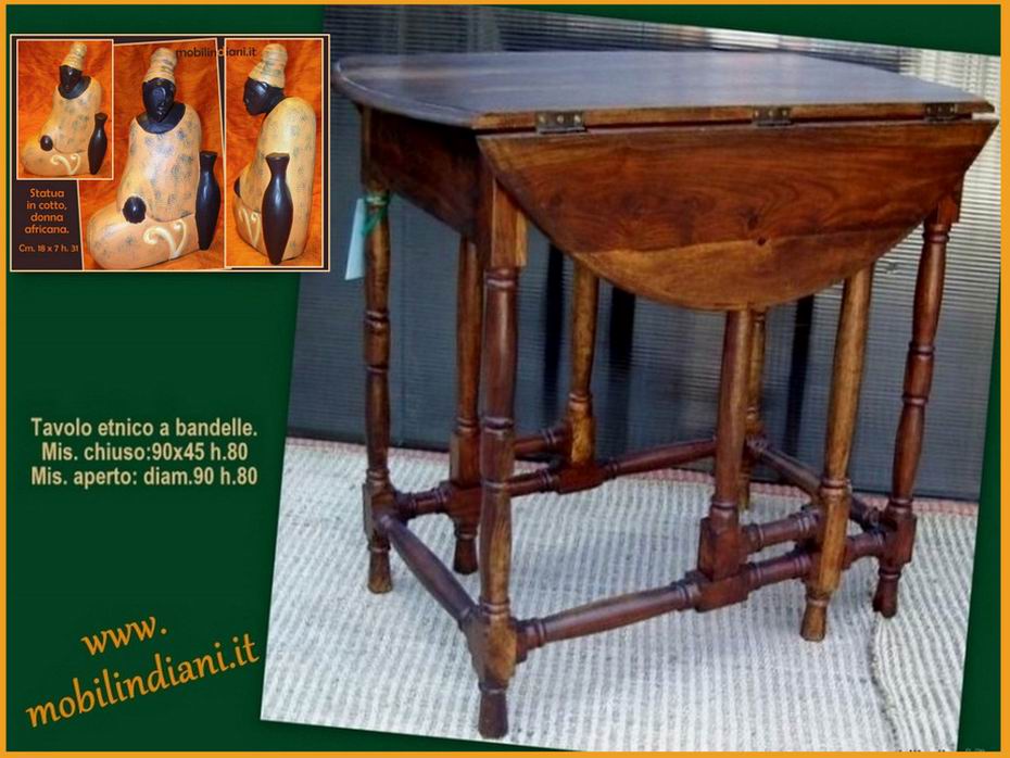 Disponibilità 1Tavolo consolle in legno con bandelle. Paese India. Chiuso cm.90x45 h.80 Aperto diametro cm.90 h.80 Legno massello sheesham (noce) COSTO TRASPORTO €. 68,95 Iva Inclusa. Per costi trasporto Isole, chiedi info su WhatsApp o mail: info@mobilindiani.it