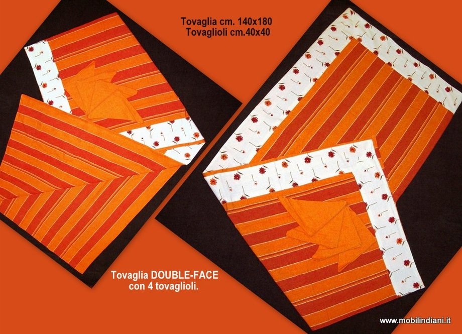 Disponibilità 2Tovaglia etnica doubleface con 4 tovaglioli, cotone telato. Tovaglia cm.140x180 - Tovaglioli cm.40x40 Paese India. Lavaggio a 30° DISPONIBILI IN COORDINATO ANCHE CUSCINI (Vedi seconda foto) COSTO TRASPORTO €. 8,80 Iva Inclusa