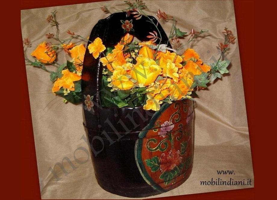 Vaso tibetano dipinto su 2 lati e sul manico. Diam. cm.34 h.55 Paese Tibet. Decoro floreale su fondo nero. Legno olmo. Uso occidentale: porta fiori secchi, porta riviste, porta legna ecc. COSTO TRASPORTO €. 24,40 iva inclusa. Per trasporto Isole invia mail a info@mobilindiani.it