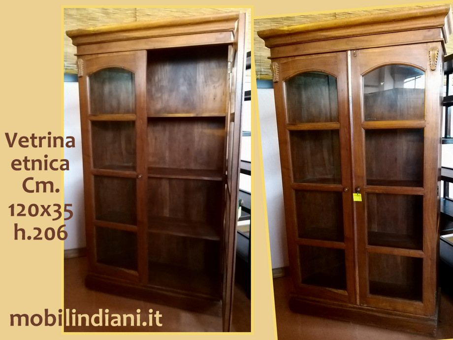 Vetrina etnica stretta 2 battenti. Vetrina indiana due battenti e ripiani interni. Cm.120x35 h.206 Paese India. Incluso restauro. Legno massello palissandro SOLO RITIRO PRESSO NS. SEDE COSTO ZERO - Per info chiedi su WhatsApp o mail: info@mobilindiani.it
